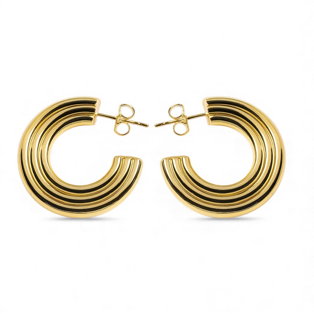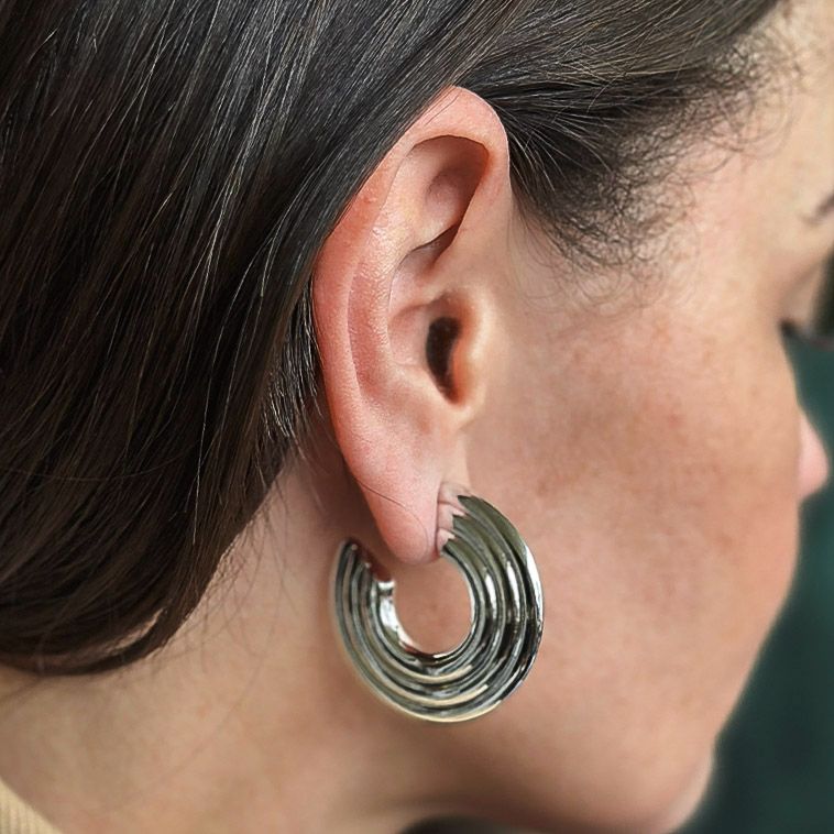 Semijoia feita em ABS (Acrilonitrila Butadieno Estireno): um material premium super leve e resistente, usado para criar peças volumosas sem pesar na orelha. Recebe banho de ouro 18k ou ródio branco e acabamento de alta durabilidade, garantindo brilho, elegância e conforto máximo.