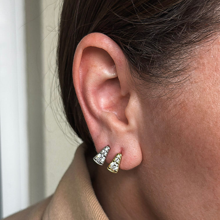 Um design moderno, geométrico e delicado o Brinco Formas Lux é aquele tipo de peça que parece simples… até você olhar de perto e perceber o acabamento impecável e os pontinhos de luz estrategicamente posicionados.