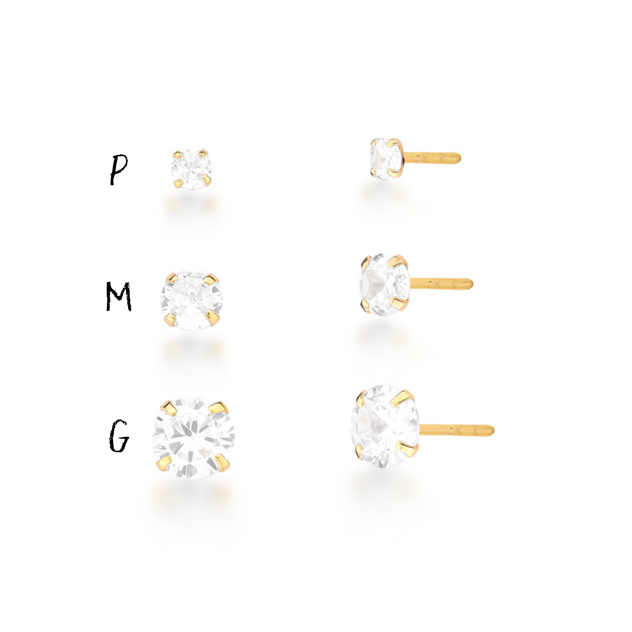 É aquele clássico indispensável que nunca sai de moda. Com uma zircônia redonda de 4mm, 6mm ou 8mm, brilho intenso e lapidação perfeita, ele entrega luminosidade delicada e imediata ao rosto, aquele efeito elegante e atemporal que combina com absolutamente tudo.