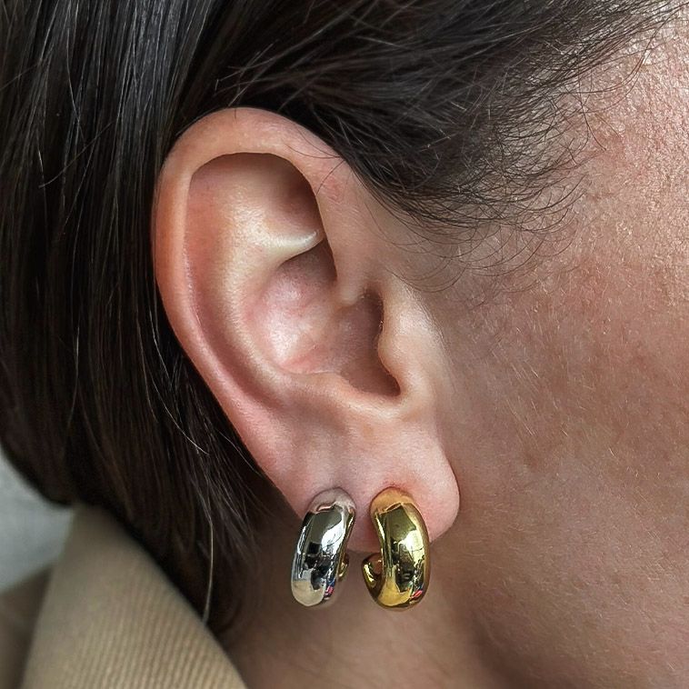 • Formato meia-argola: clássico da joalheria, reinterpretado com linguagem contemporânea.