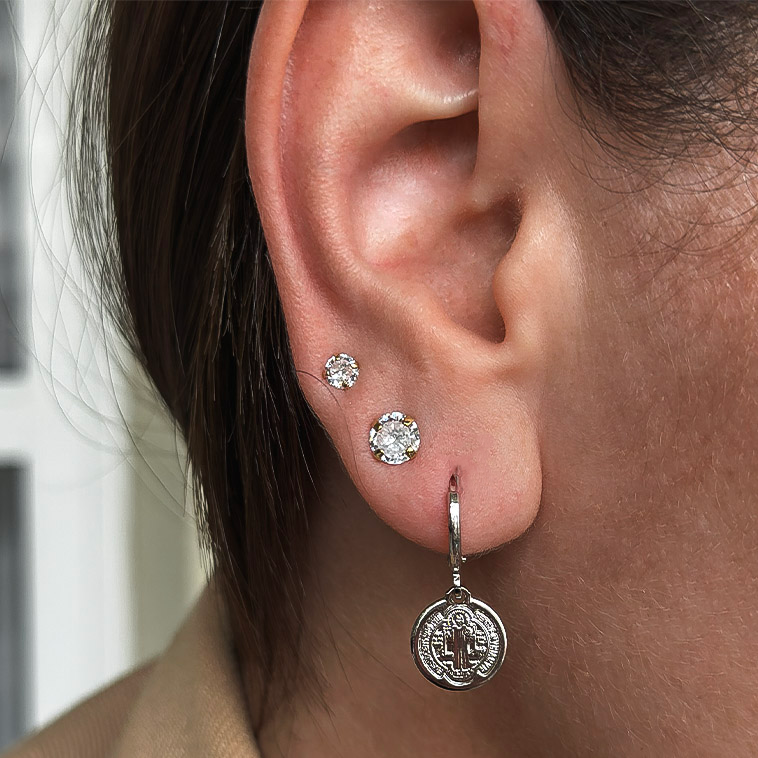 A Argola Medalha São Bento une espiritualidade, moda e elegância em uma única peça. Com design moderno e acabamento delicado, ela traz a clássica medalha de São Bento, em um pingente delicado e cheio de presença.