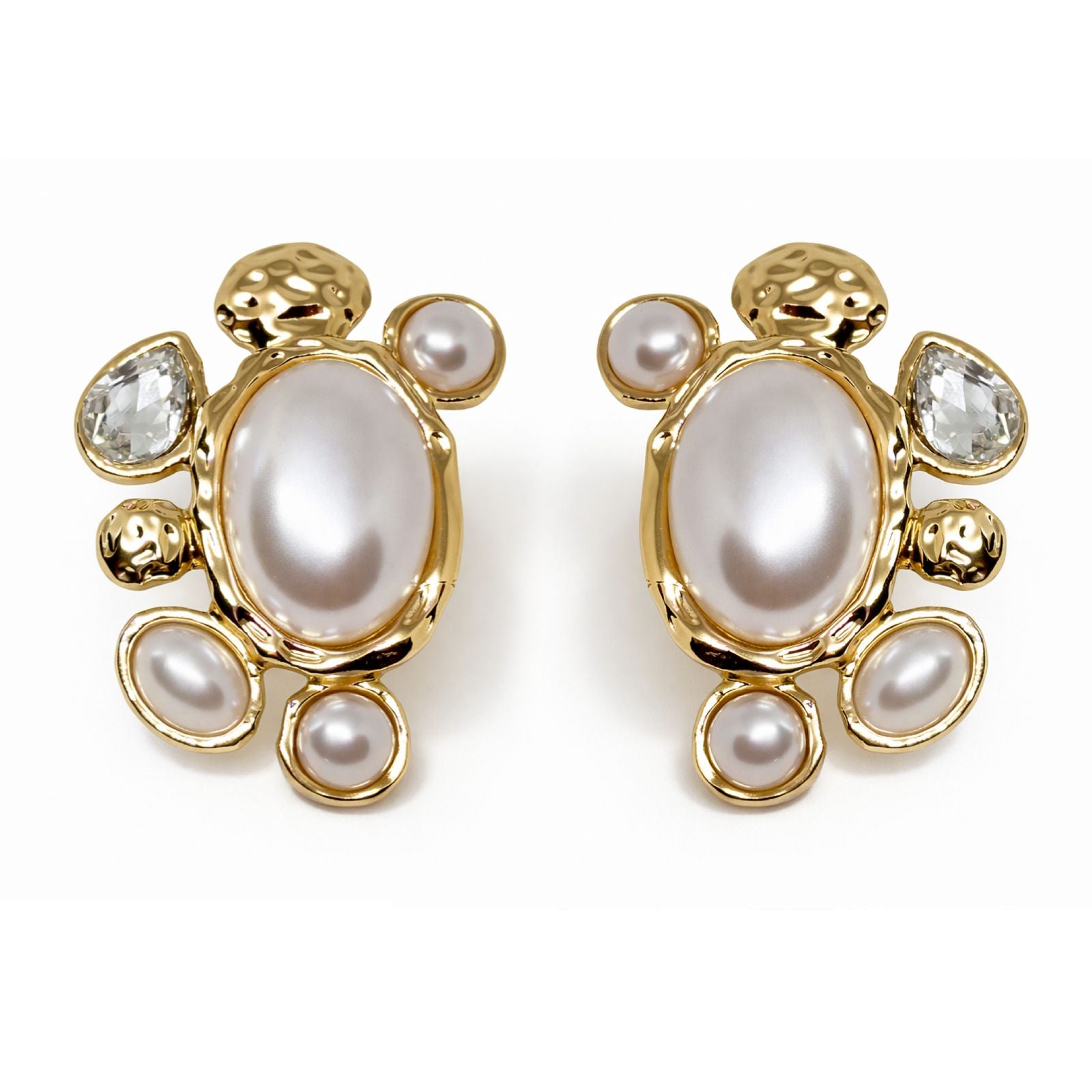 O Brinco Bree é uma peça sofisticada, orgânica e extremamente elegante. Com composição de pérolas em diferentes tamanhos e acabamento dourado texturizado, ele traduz o equilíbrio perfeito entre o clássico e o contemporâneo. Seu design irregular e fluido traz uma estética artesanal de luxo, ideal para quem busca uma semijoia refinada com presença marcante.