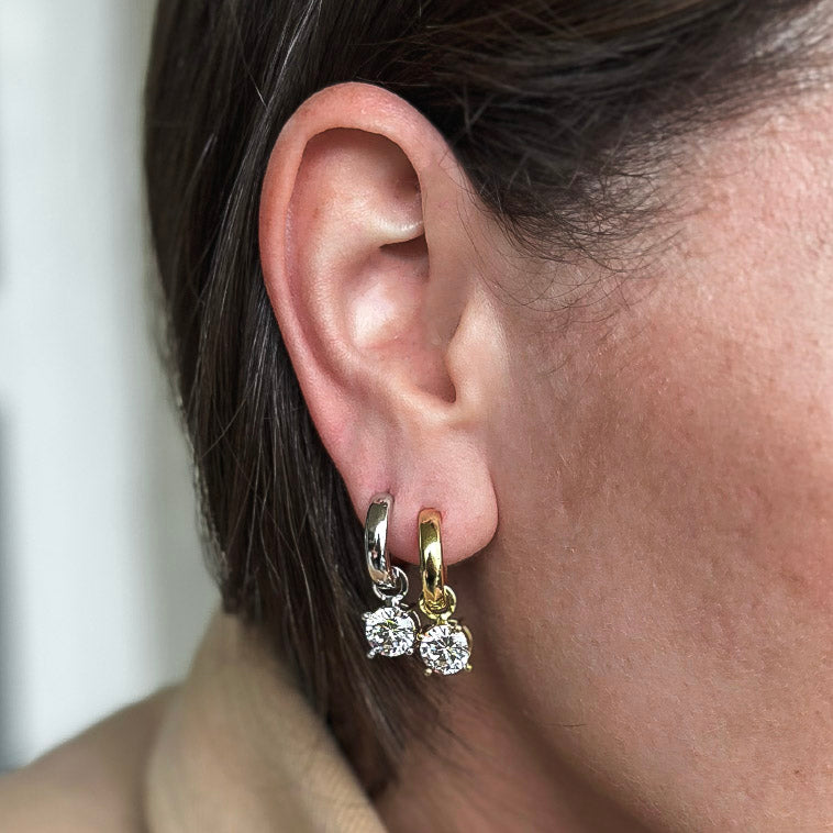 O pingente é totalmente removível, permitindo que você transforme a peça em segundos: use como argola clássica no dia a dia ou com o ponto de luz para um toque mais glam.