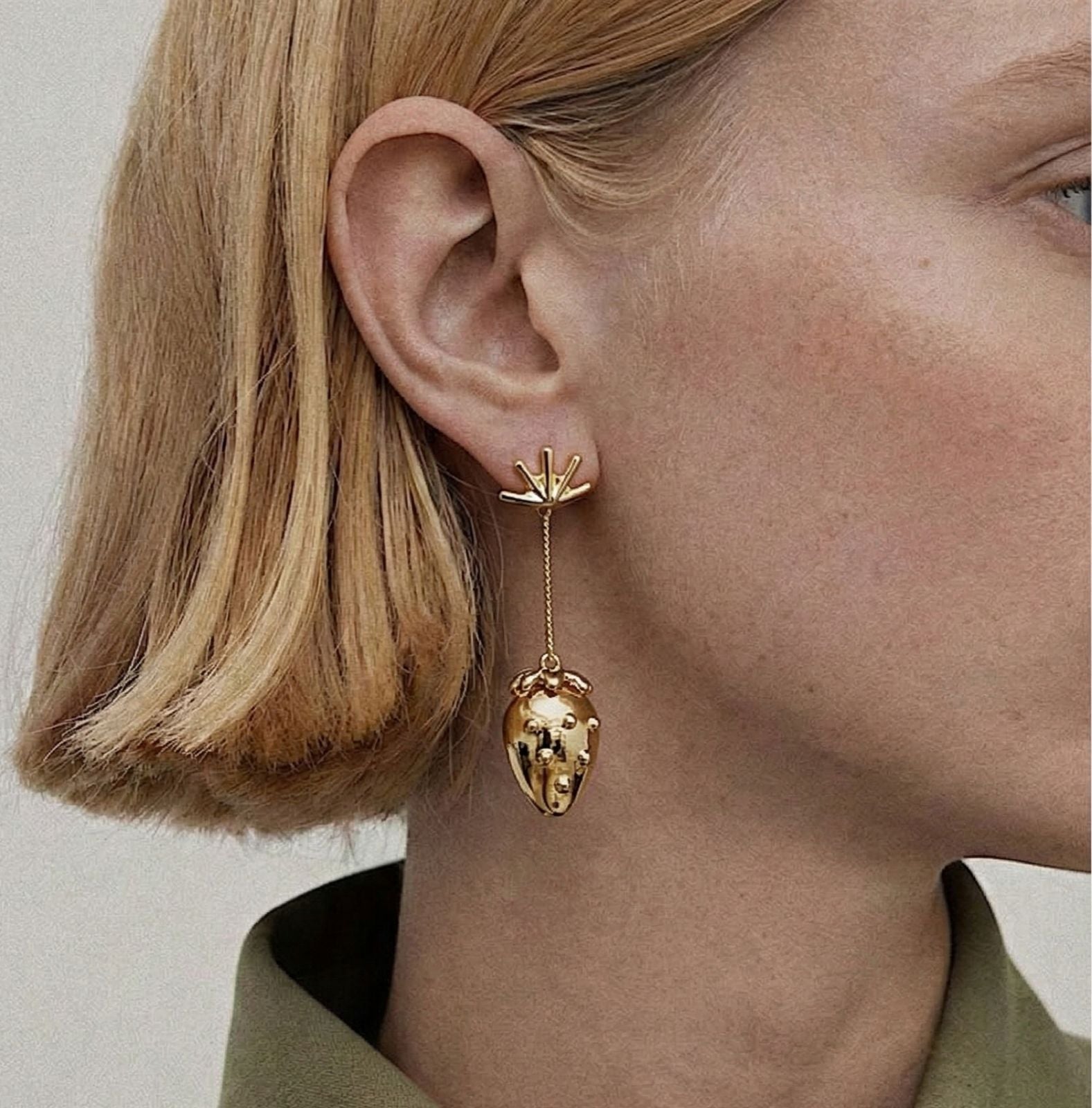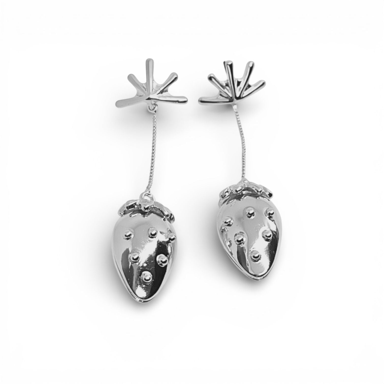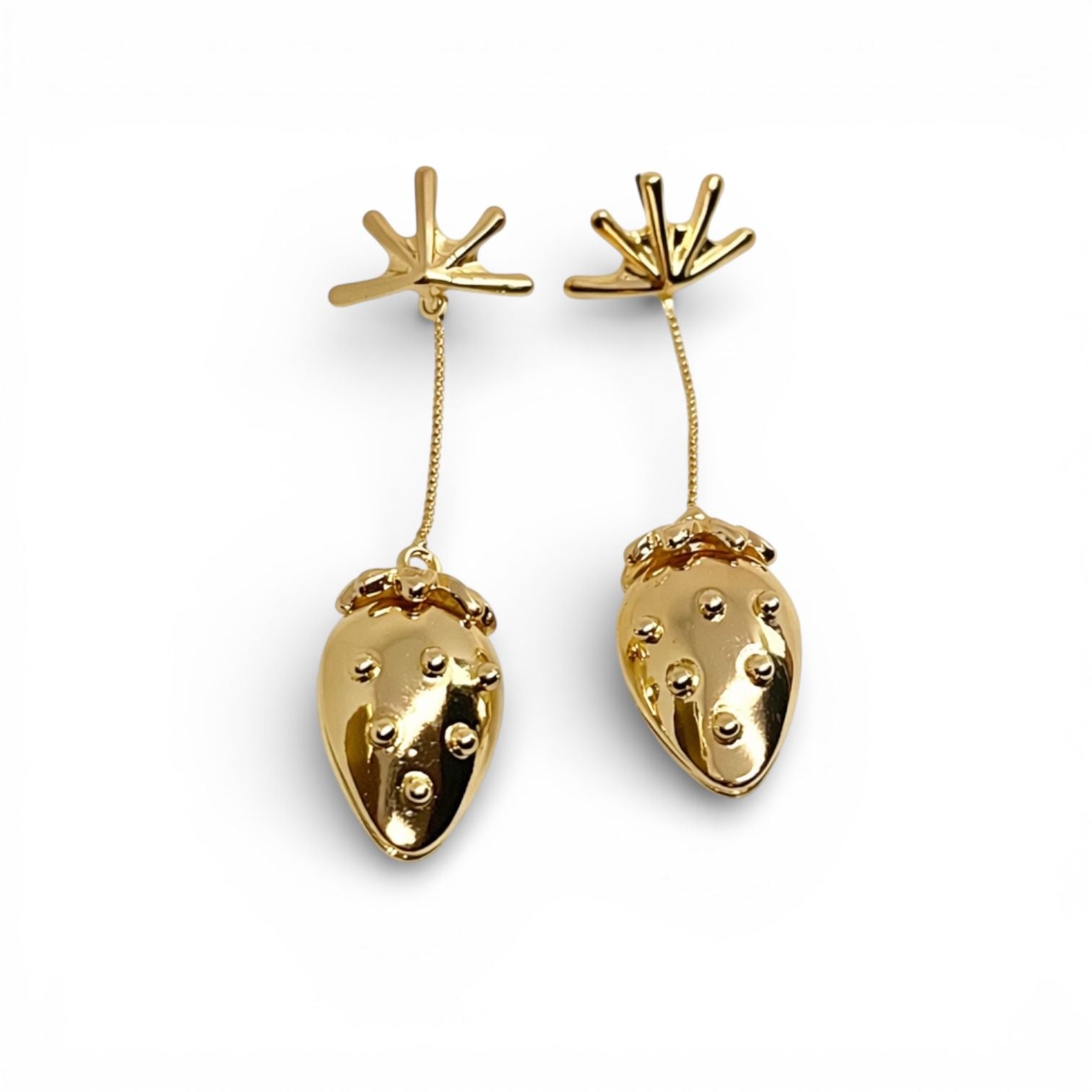 Este brinco traz um design lúdico-contemporâneo, inspirado no formato orgânico do morango, reinterpretado de forma escultural. O acabamento polido espelhado eleva a peça do universo divertido para o fashion statement, criando contraste entre o tema playful e a execução sofisticada.